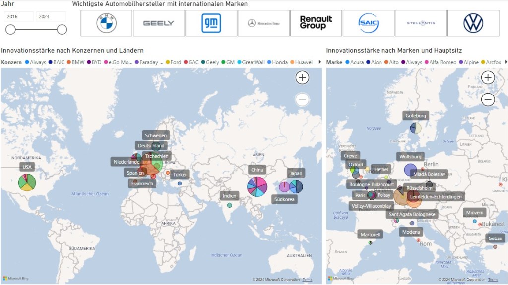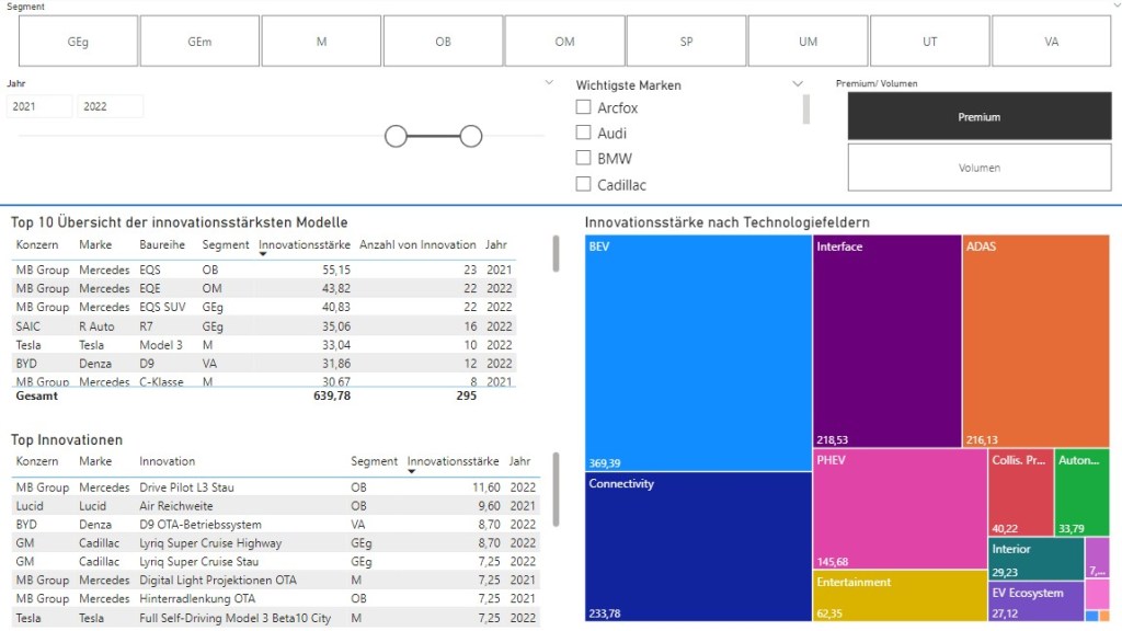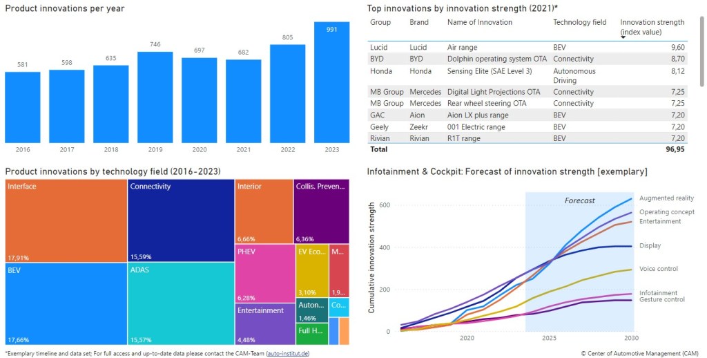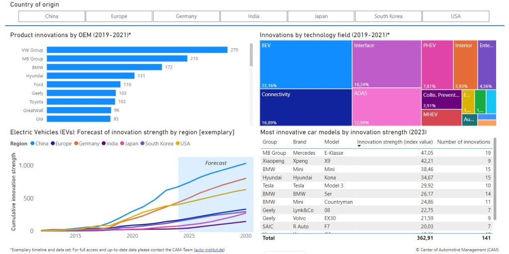 The Dashboard is based on our continously updated AutomotiveINNOVATIONS database and can be licenced by the Center of Automotive Management.