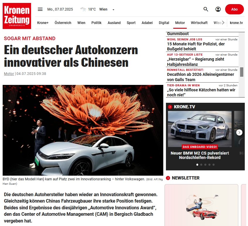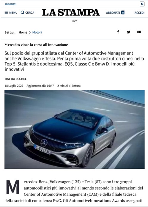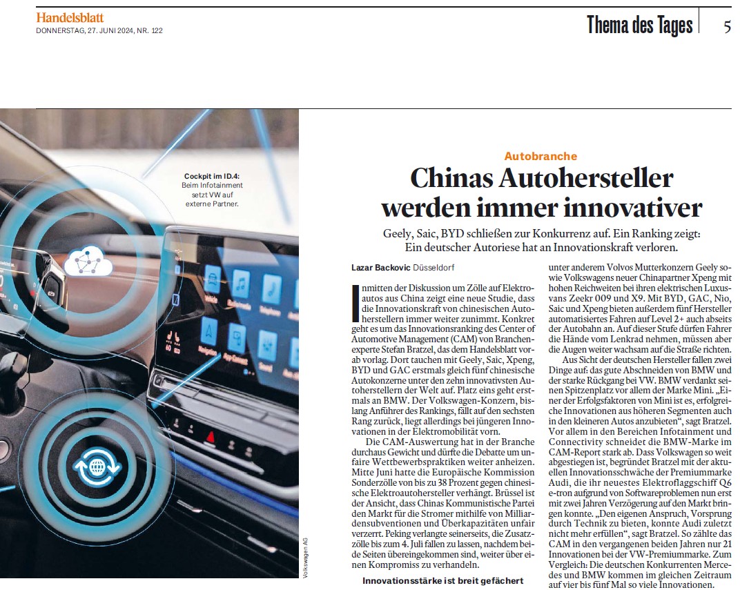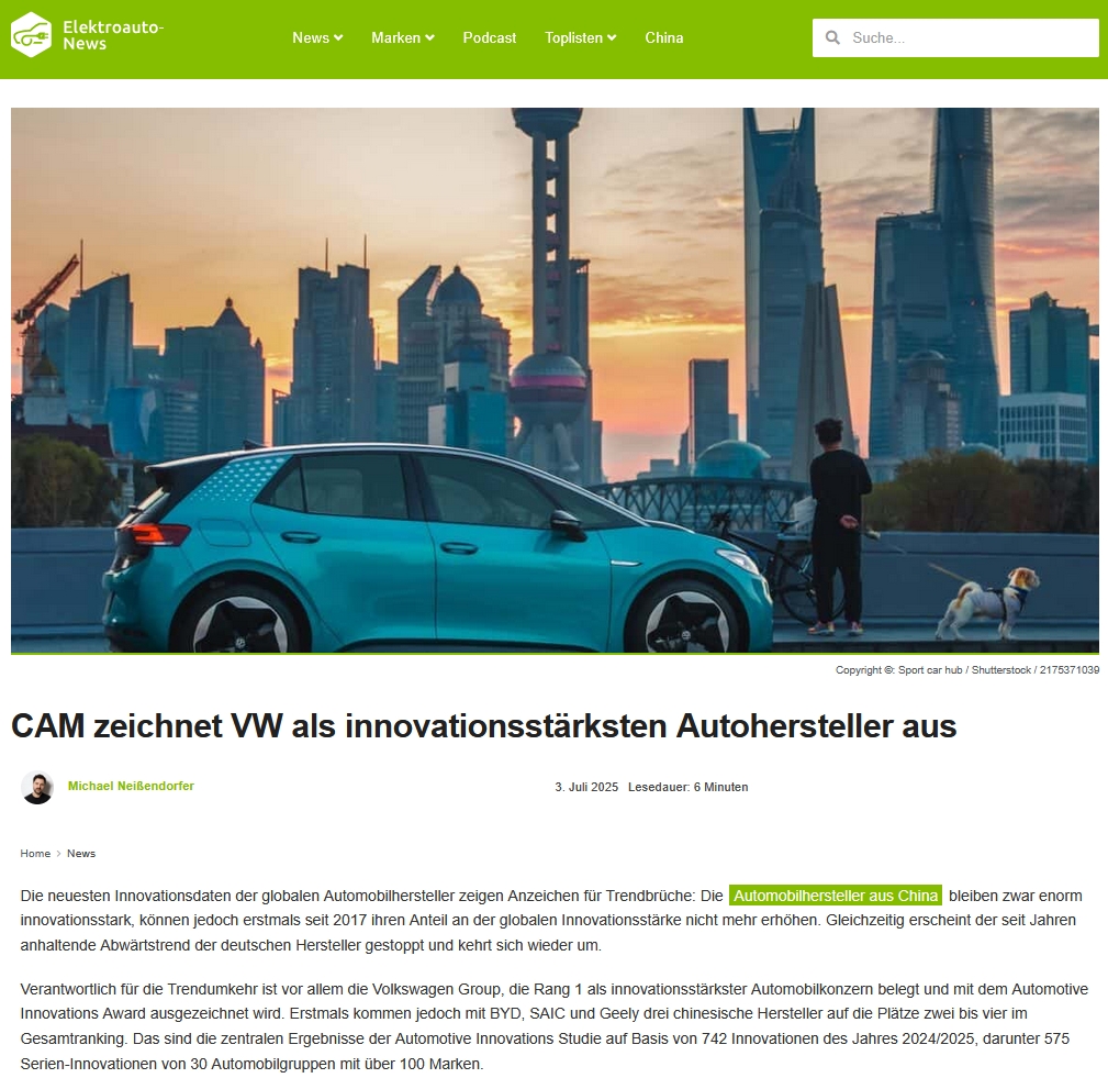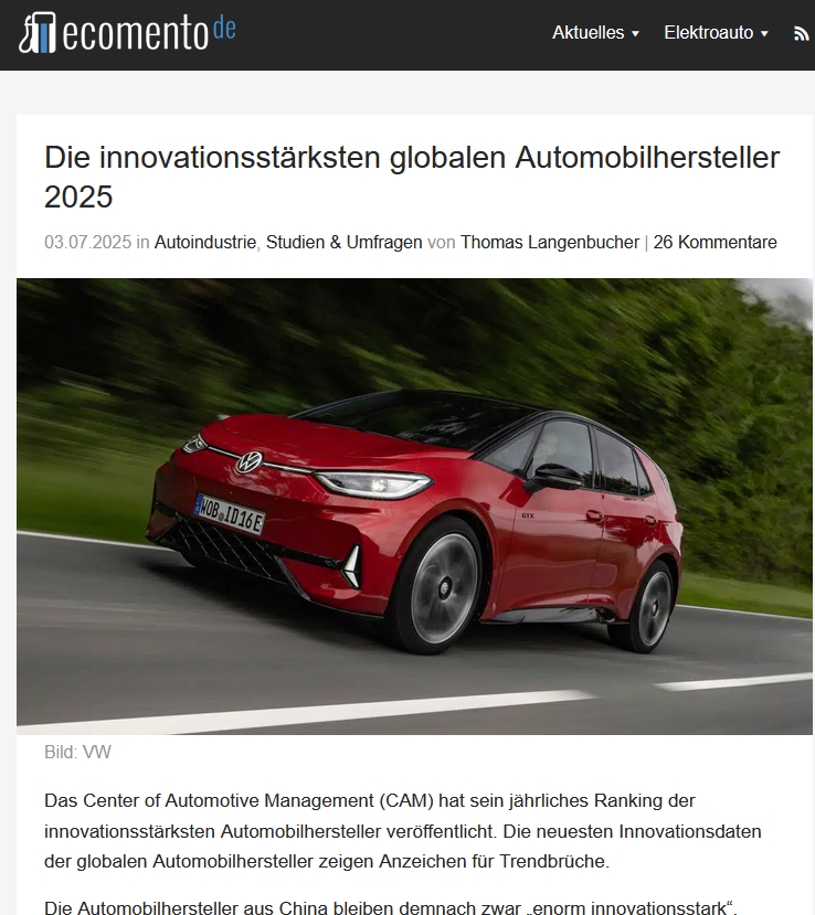 Center of Automotive Management and the AutomotiveINNOVATIONS study receives widespread media coverage. This also includes interntional press as well as automotive OEMs and suppliers honoured by CAMs AutomotiveINNOVATIONS Award.