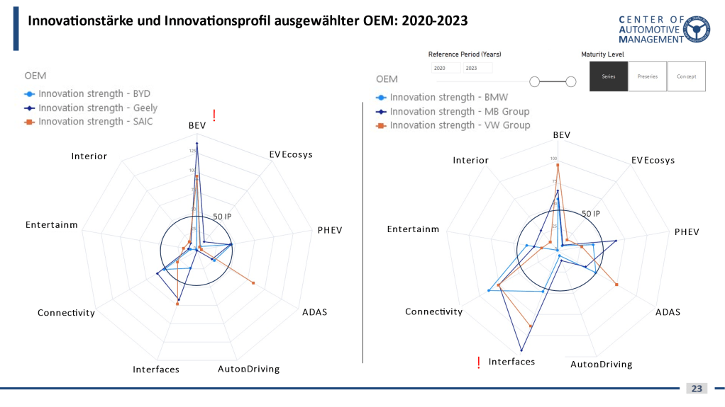 From the innovations presented in this and previous AutomotiveINNOVATIONS studies, the central developments in the industry in the various technology fields can be observed. At the same time, the competencies and specific strategic profiles of automotive manufacturers in the various fields of innovation become apparent.