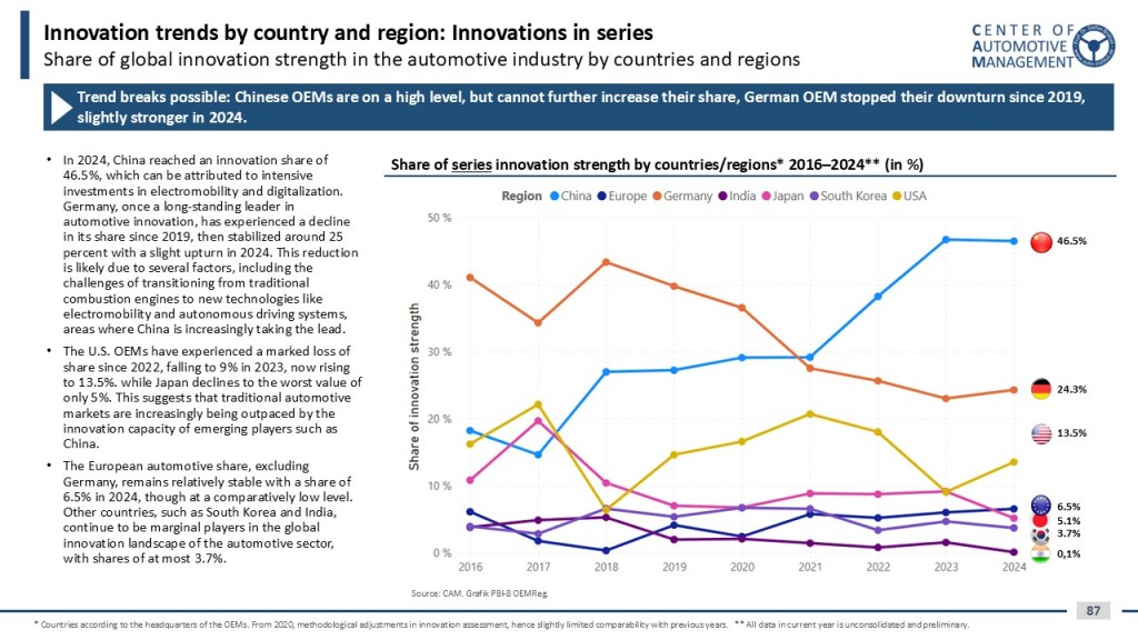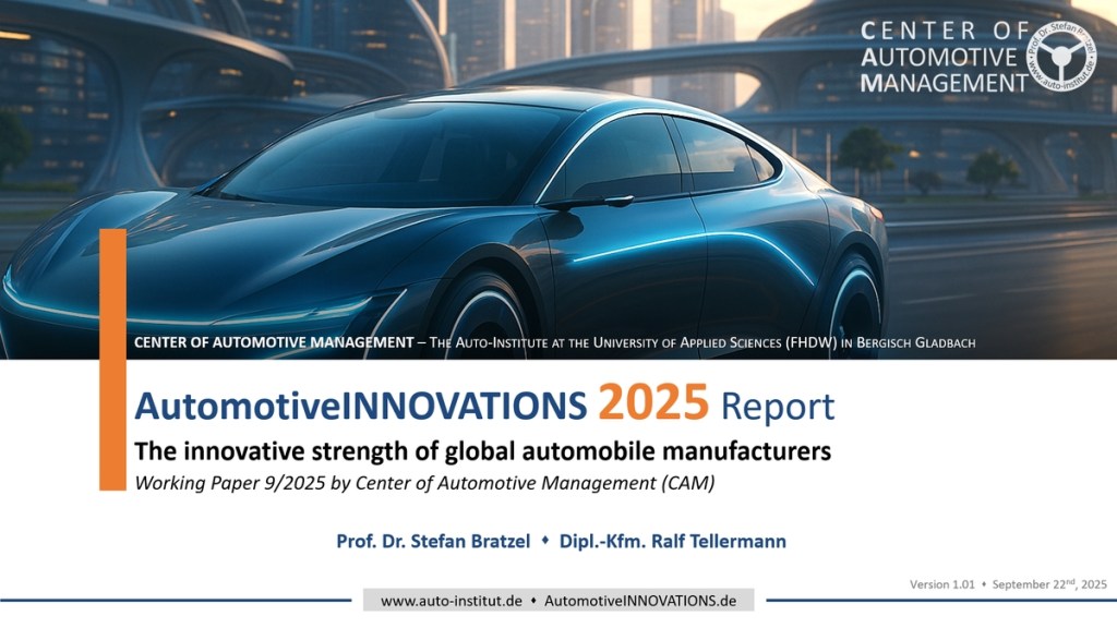 The AutomotiveINNOVATIONS Report 2025 – in english language – identifies the future trends of 30 automotive companies and innovative startups with around 100 brands from Europe, Japan, the USA and China, based on around 750 categorized and individually evaluated vehicle technology innovations from 2024/25.
