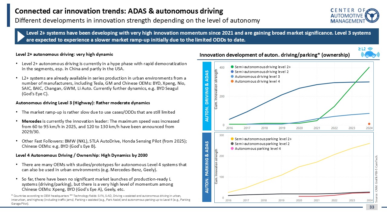 - Most innovative brands by technology fields, e.g. Electric Drive, Autonomous Driving/ ADAS, Connectivity